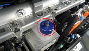 NoteEnsure that the fluid level is at the Max line, Top off fluid as required.