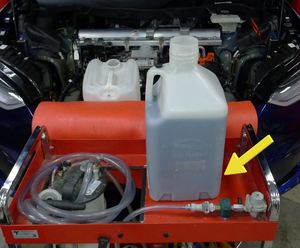 NoteMove coolant drain & fill cart away from vehicle.