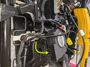 - Slide the OCS harness connector downward onto the SBR bracket, and then connect the electrical connector.