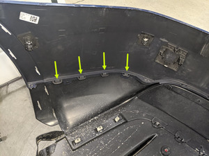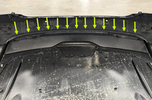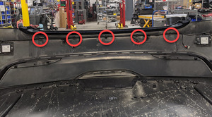- With assistance, position the rear fascia assembly onto the vehicle, and then secure the tabs (x24) that attach the assembly to the vehicle.