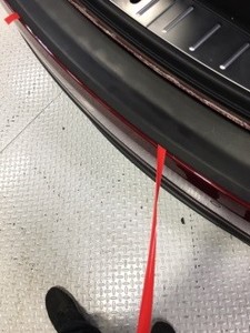 - Remove the adhesive backing, and then fully seat the lower trough garnish onto the rear fascia.