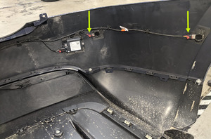 - Connect the rear fascia harness to the parking assist sensors (x6), and then engage the locking tabs.