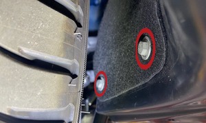 that attach the LH rear fender garnish and arch liner to the vehicle.