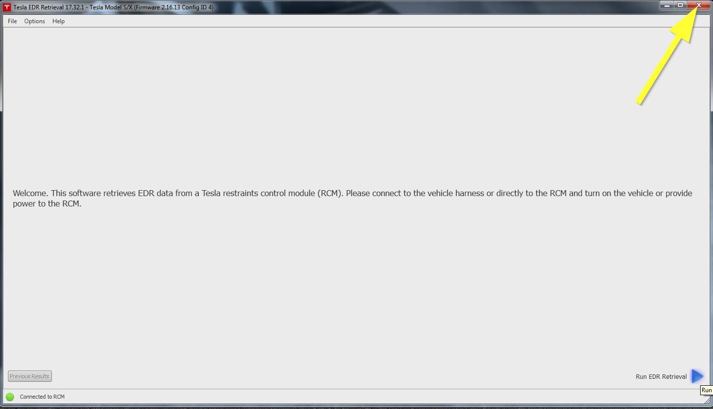 - Close the Tesla EDR Retrieval Program.