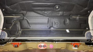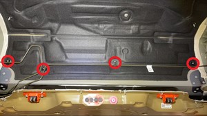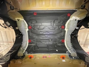 Release the clips (x6) that attach the rear motor bay noise absorber to the body, and then remove the noise absorber from the vehicle.