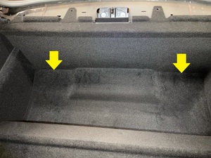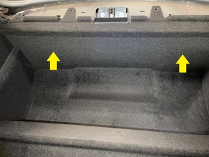 - Peel up the outer corners of the 2nd row rear carpet to guide it into position, and then install the clips (x2) that attach the floor board to the vehicle.