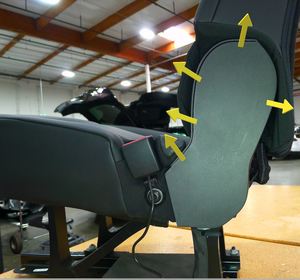 NoteSlide trim subassembly over headrest bracket down to seat controller bracket.