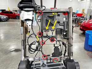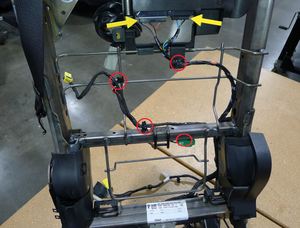 Note3x clips, Secure cushion heater connector X2008A facing rearward to properly orient the harness and route down the rear riser.