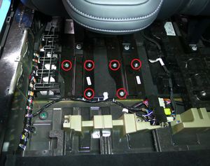 NoteStarting from the front, lift carpet over harpoon brackets, Fold back enough to access rear seat components.