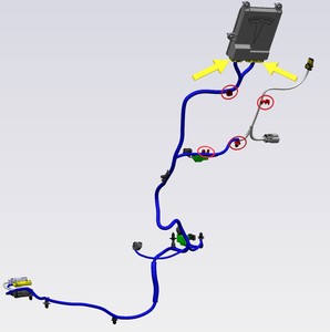 Note1x connector, 1x edge clip, 1x clip, Release clips after disconnecting harness.