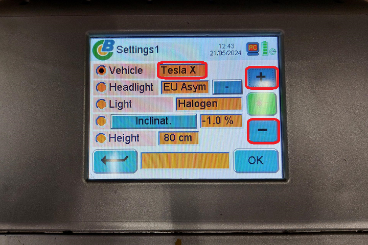 - Select Vehicle, and then use the + or - buttons to set the vehicle type to Tesla X.