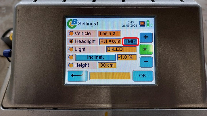 - Select Headlight, use the + or - buttons to set the Headlight type to EU Asym, and then use the small - button next to the EU Asym field to select TMR.