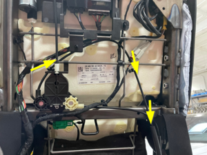 - Release the clip that attaches the RH 2nd row seat harness to the seat frame.