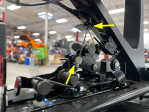 - Position the RH 2nd row EZ entry release cable into the RH 2nd row seat.