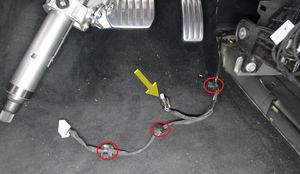 - Fasten the clips (x3) and connect the electrical connector for the pedal electrical harness.
