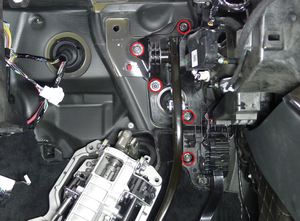Install new nyloc nuts (x5) that attach the pedal assembly to the bulkhead.
