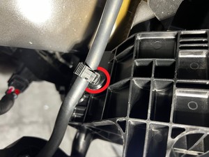 - Release the clips (x2) that attach the electrical harness and air line bundle to the air compressor bracket.