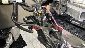 - Install the clips (x2) that attach the electrical harness and air line bundle to the air compressor bracket.