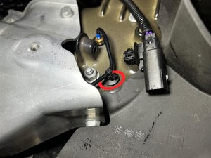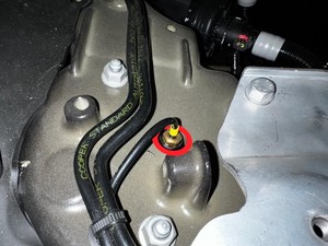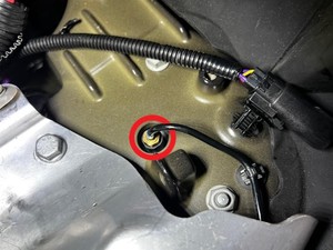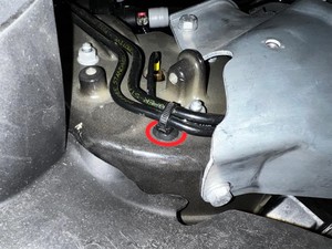 NoteOnce the air leak can be heard, stop turning until all air is released. - Release the clip that attaches the front bundle to the LH shock tower assembly.