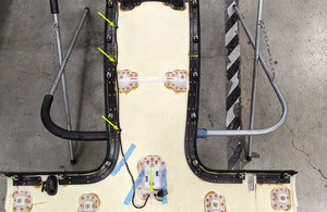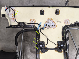 - Position the headliner harness into the headliner, and then secure the clip and tabs (x6) that attach the harness to the headliner.