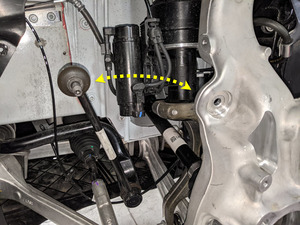to the LH front suspension knuckle, and then install a new nut that attaches the link to