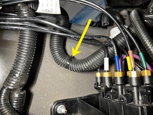 - Release the clip that secures the body harness, and then move the harness aside to gain access to the air suspension valve block.