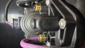- Release the clip that attaches the air suspension compressor to valve air line, and then remove the air line from the vehicle.