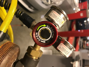 - Close the pressure regulator valve on the nitrogen tank to release the line pressure in the lines.