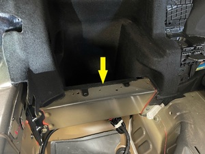 - Remove the rear trunk crush can trim. See Trim - Crush Can - Rear Trunk - LH (Remove and Replace).