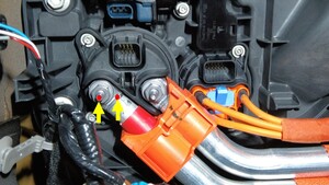 Remove the bolts (x4) that secure the charge port assembly, and remove the charge