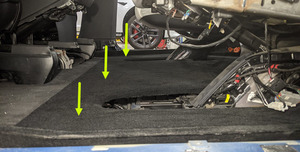 - Remove the 2nd row floor mat. See Floor Mat - 2nd Row (Remove and Replace).