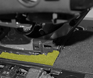 - With assistance, position the 2nd row mid floor board on the vehicle, and then install the clips (x5) that attach the floor board to the vehicle.