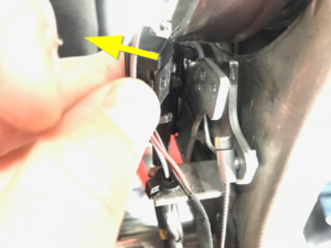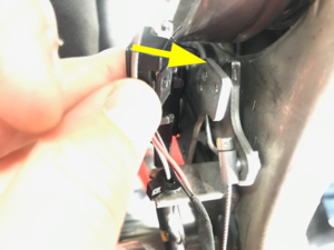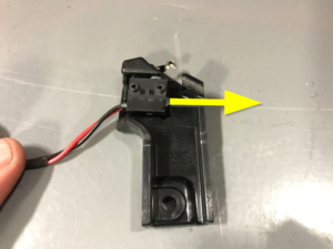 - Gently press the clip to the side to release the EZ entry microswitch from the bracket.