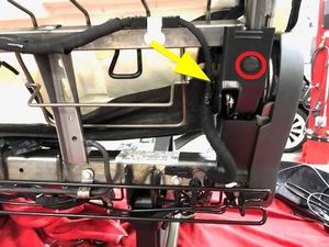 - Secure the black connectors (x2) to the LH 2nd row seat frame, and then connect the electrical connectors (x4).