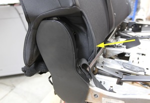 - Position the LH 2nd row seat plastic seat back on the seat, and then install the clips (x13) that attach the seat back to the seat.