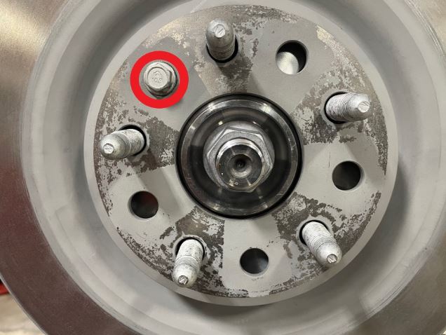 If the retention screw is missing from the LH rear rotor, remove the rotor from the