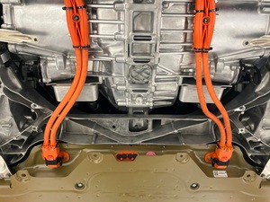 NoteMove and tilt the subframe lift as it is raised to make sure that the coolant hoses don't get caught, or that the HV battery is damaged by the front motor mount of the rear subframe.