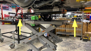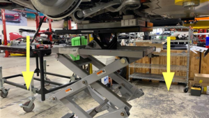 - Move the vehicle to a 2 post lift. See Raise Vehicle - 2 Post Lift.
