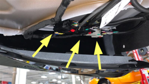 - Release the fir tree clip that attaches the electrical harness to the LH lower control arm.