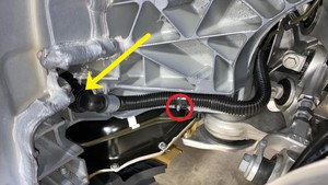 - Release the clip that attaches the rear subframe electrical harness from the LH wheel well.