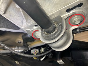 - Remove the bolts (x4) that attach the rear stabilizer bar to the rear subframe, and then remove the stabilizer bar from the subframe.