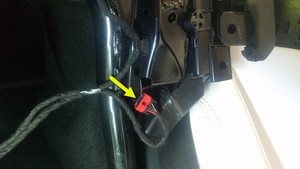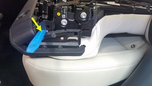 - Disconnect the LH 2nd row backrest harness, and then release the clip that attaches the harness to the backrest.