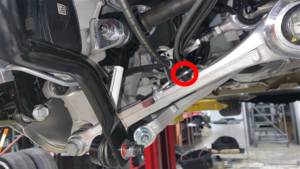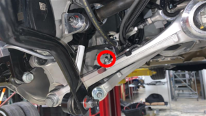 Measure the distance from the upper fore link to the bolt on the frame rail to make