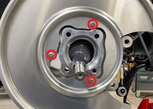 Note4x bolts, 18mm, 90 Nm, Tighten down hub evenly and diagonally, Do not damage or bend axle, Axle splines should be correctly fitted before tightening down the hub.