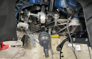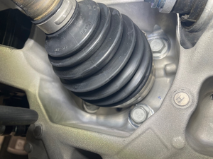 - Use hub puller to free LH rear halfshaft from hub splines.