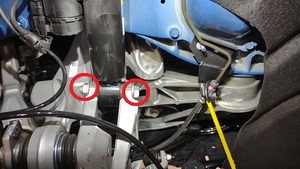 Note2x bolts, E18, 125 Nm, Hang caliper from body if not fully removing, Route caliper hose so that it does not get caught on stabar assembly.