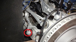 Note1x nyloc nut, 15mm, 55 Nm, Break nut loose then counter-hold ball joint with 5mm hex, Discard after removal.