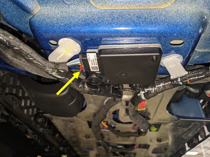 - Release the red tab and press the black tab to disconnect the electrical connector from the interior radar.
