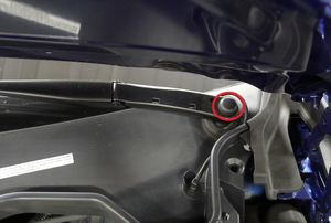 Note1x nut, 15mm, 32 Nm, Do not flex wiper arm to remove, Lower the hood slightly to fit wiper arm removal tool