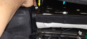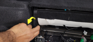 - Press the tab outward, and then pull to release the LH 3rd row bracket cover from the vehicle.